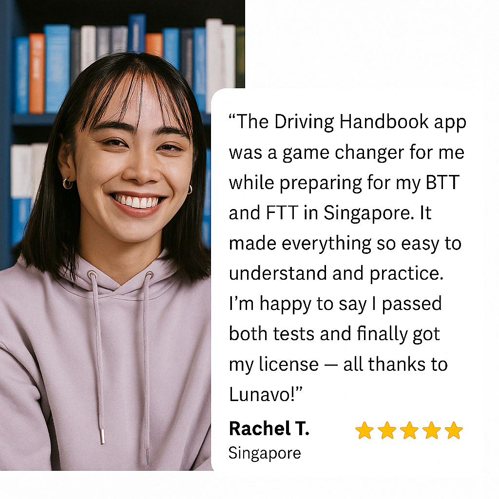 Driving Handbook is a complete and professional app designed to help you prepare efficiently for the BTT, FTT, and RTT theory tests in Singapore.